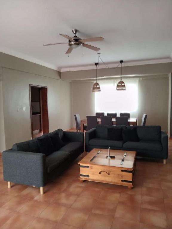 "The apartment is clean, spacious, and well equipped. All utilities were clean and good to use , just a few little things as leaking water from the sink or fridge, not knowing where, but most of the time was water on the floor. The kitchen furniture was run down. The pool was nice , we did not use it and was out of work for 2 days. The location is good , less than 10 minutes walk to Ole supermarket or guagua station. Nice to have AC in the room , easy check in and check out .Good price for what you get."
